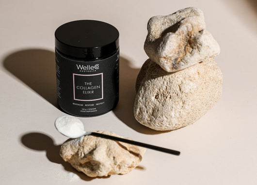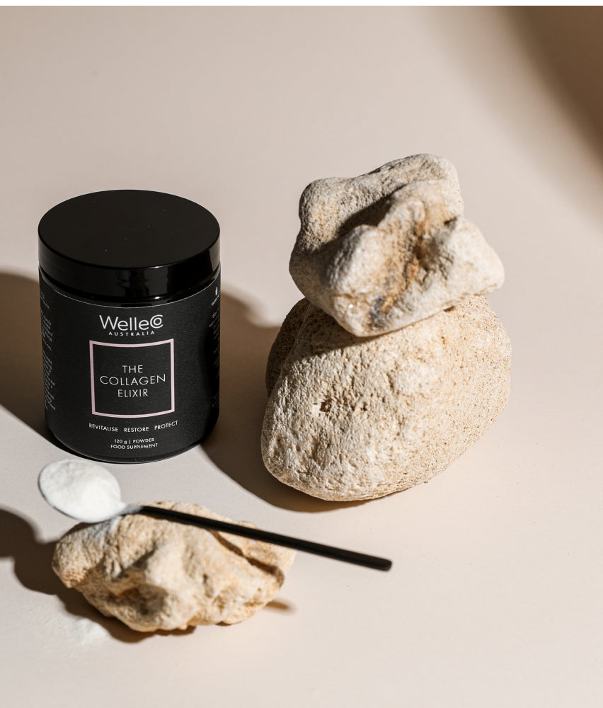 The Collagen Elixir contains premium hydrolysed marine collagen peptides from sustainably sourced fish + natural Vitamin C and hyaluronic acid to support/boost skin collagen formation and production, hydration, elasticity and integrity.